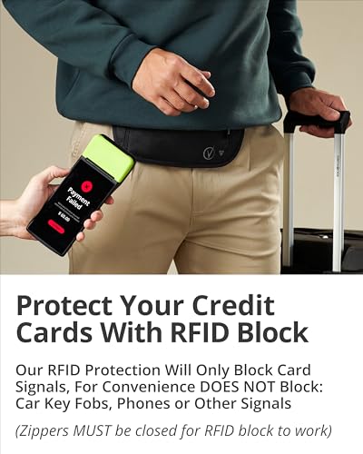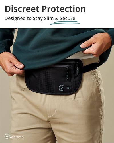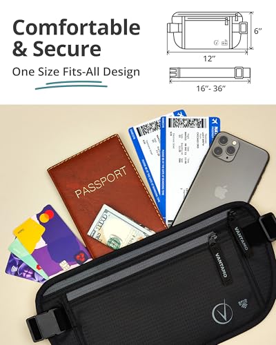 Vantamo - Travel Wallet Money Belt, RFID Protected, Fits Passport with Cover, Includes Global Recovery Tags