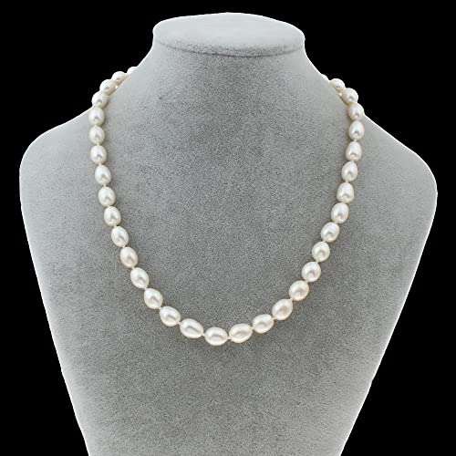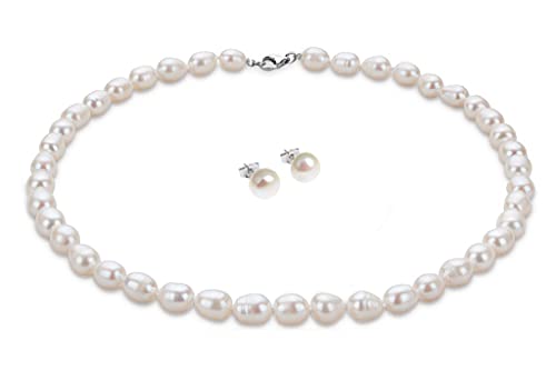 Treasure Bay - طقم عقد وحلقان لؤلؤ المياه العذبة الابيض 8-9 ملم مجوهرات اللؤلؤ للنساء من تريجرباي احجار كريمة متعدد الألوان