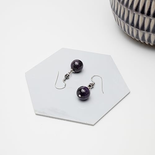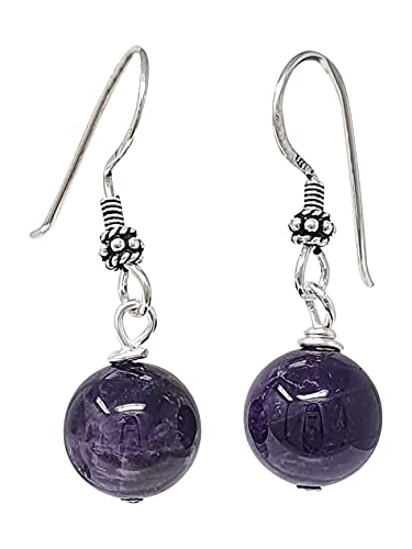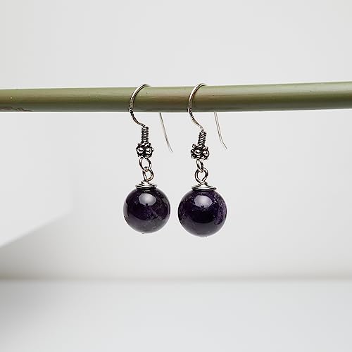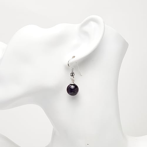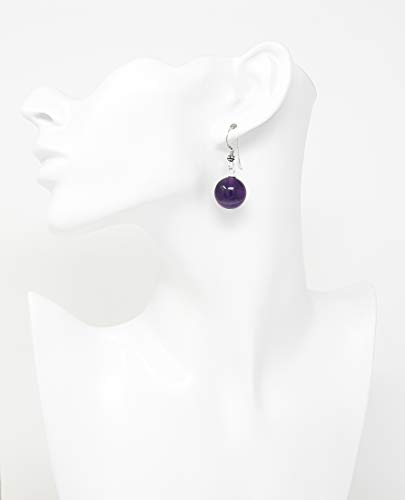 Treasure Bay - Treasure Bay Handmade 12mm Natural Gemstone and Sterling Silver Dangle Drop Earrings (Purple Amethyst)