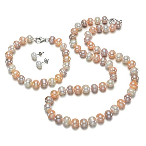 Treasure Bay - Treasure Bay Multi-Coloured Pink White and Grey freshwater Pearl Necklace, Bracelet and Earrings Jewellery Set
