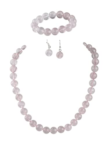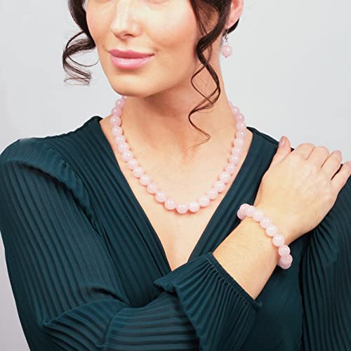Treasure Bay - Treasure Bay Stunning 12mm Natural Gemstone Beaded Necklace and Bracelet Jewellery Set For Women (Pink Rose Quartz)