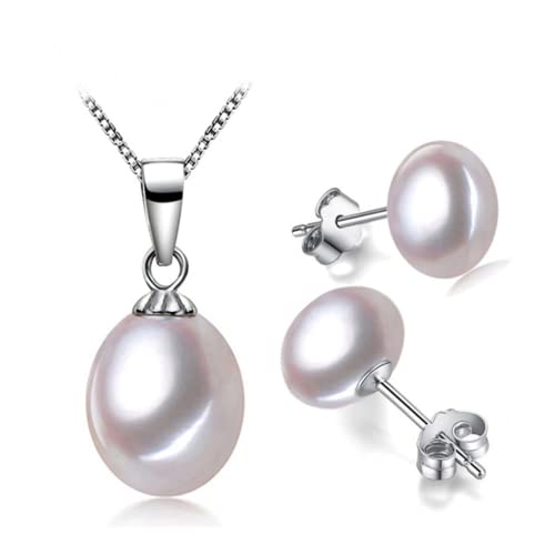 Treasure Bay - تريجرباي طقم مجوهرات مكون من عقد واقراط وخاتم اللؤلؤ للنساء مصنوع الفضة الاسترلينية عيار 925 ال اي سي متعدد الألوان