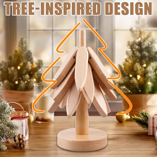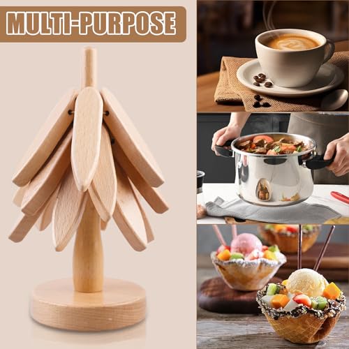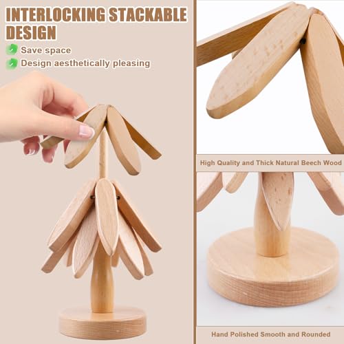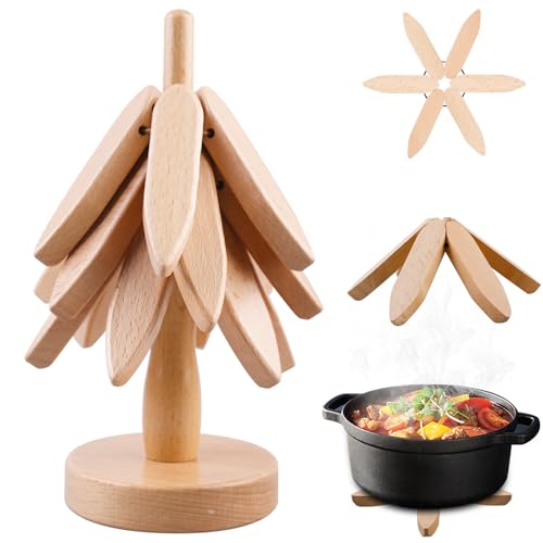 Behogan - قواعد اكواب خشبية قابلة للطي للاوعية الساخنة، مجموعة من 3 قطع، قواعد اكواب خشبية قابلة لاعادة الاستخدام، على شكل شجرة، مفارش مقاومة للحرارة للمنزل والمطعم والمكتب والبار