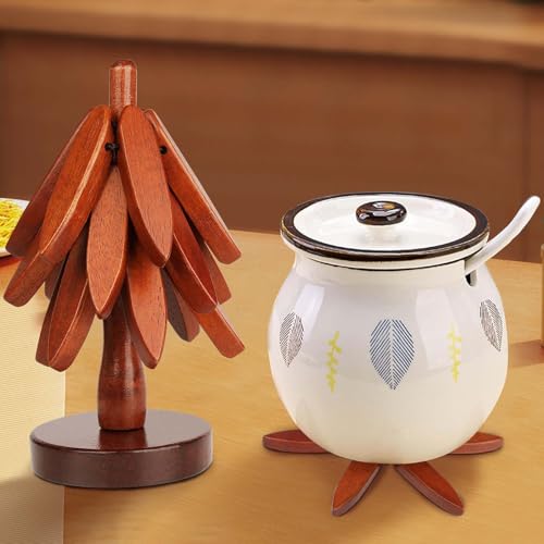 Funtery - Tree Coasters, Set of 3 Coasters, Pot Coasters, Christmas Tree Coasters, Wooden Creative Foldable Coasters, Wooden Coasters, Anti-scalding Mat for Pot Holders, Kitchen, Home Ornaments