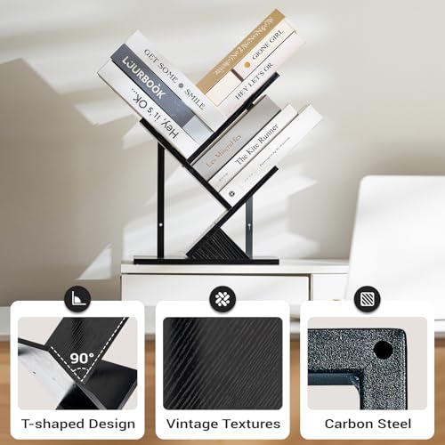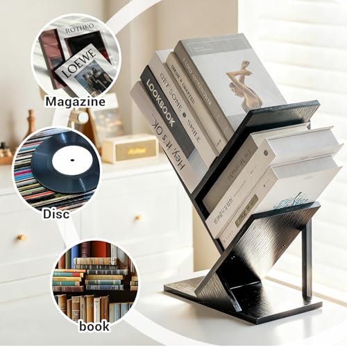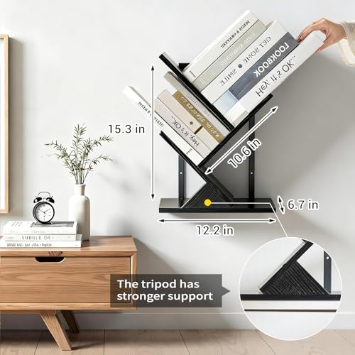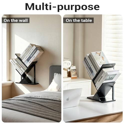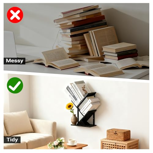 BESHIGH - Tree Wall Bookshelf 3 Tier Floating Book Shelves for Wall, Rustic Wood Hanging Bookshelf Desktop Shelf Organizer for Books/CDs/Magazine, Unique Black Tree Bookcase Storage for Home Office, Living Room