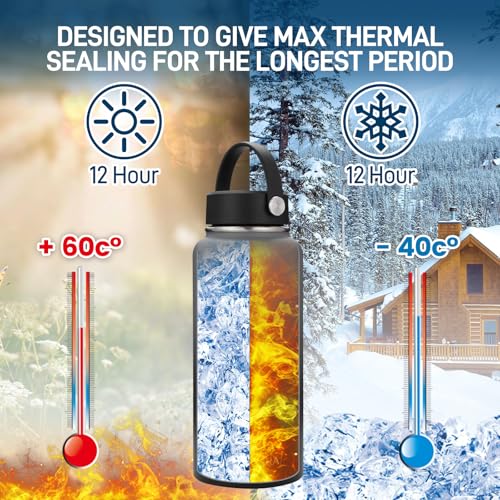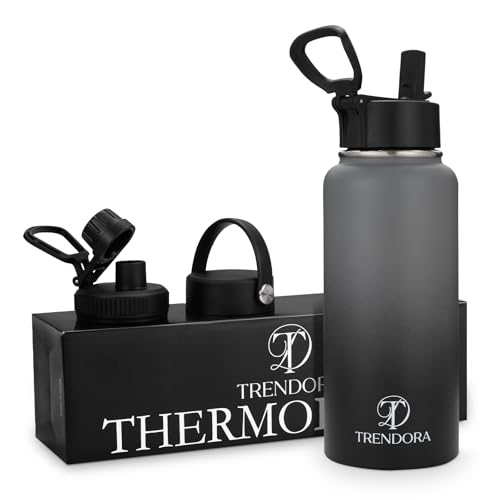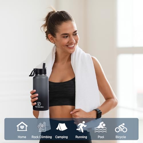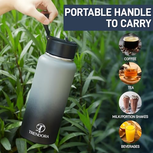 - INSULATED WATER BOTTLE : Featuring advanced vacuum insulation technology, TRENDORA 32 oz water bottle keeps your drink HOT for 12 hours and COLD for up to 24 hours, allowing you to enjoy icy cold drinks after intense workouts or hot coffee while winter camping