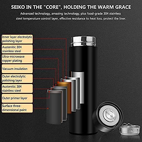 - INTELLIGENT TEMPERATURE DISPLAY-The smart water bottle has a waterproof LED display,waterproof,it's low energy consumption and without a battery change,That can use several years! Press the top of the thermos softly,Sensitive capacity touch-cover can show the temperature of water inside the thermos immediately that can avoid the embarrassment of burning your