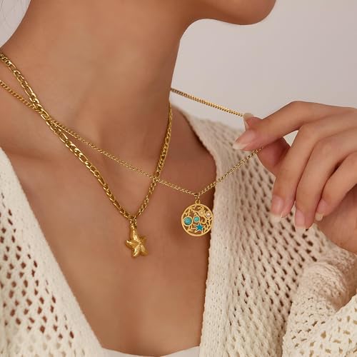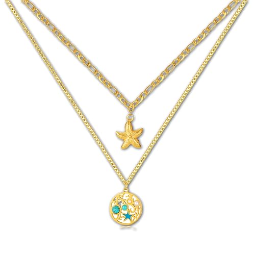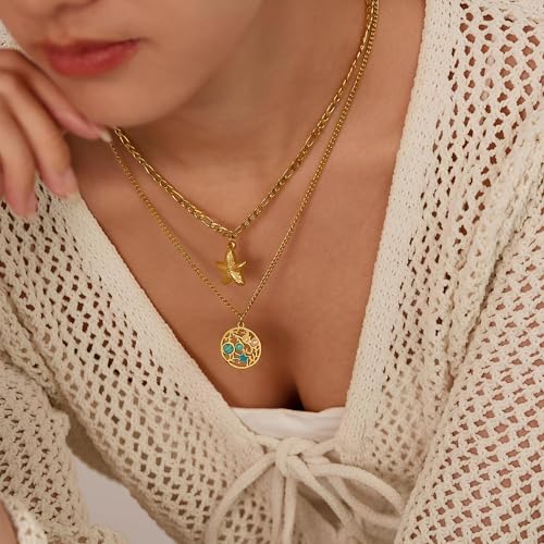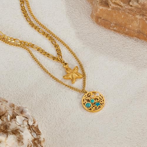 Generic - Trendsetting Jewelry - Natural Stone and Gold Double Layer Necklace with Sea Star Pendant, Hypoallergenic Steel for Women’s Gift and Accessorizing