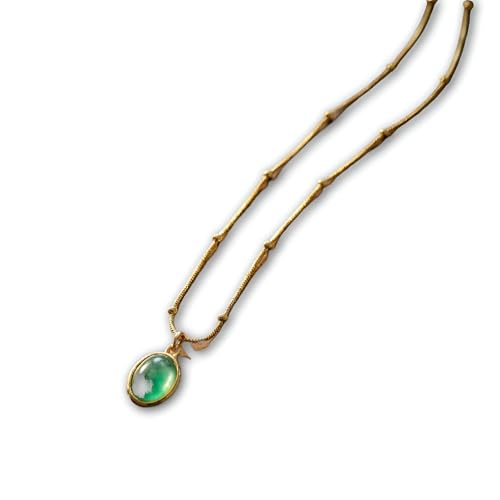 Generic - Trendy Gold Necklace - Lightweight Oval Gemstone Pendant on Stainless Steel Chain, Ideal for Women’s Special Occasions