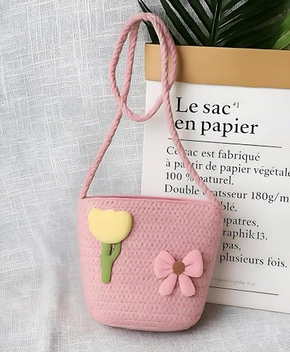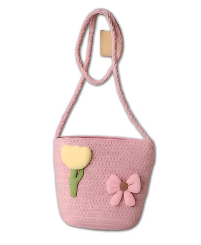Generic - شنطة ظهر عصرية للأطفال - شنطة كروس عصرية منسوجة بتصميم فيونكة على شكل زهور، الوان زاهية، جيب قوي بسوستة وحزام قابل للتعديل لدعم موثوق