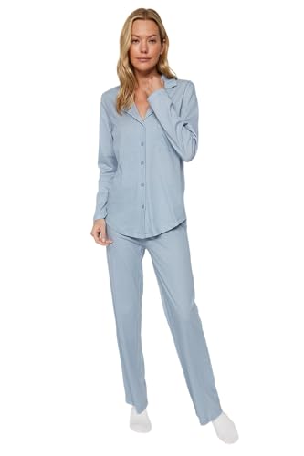 Trendyol - بيجامة طراز Thmaw24Pt00247 منسوج من قماش قطن 100% بتصميم مربعات من ترنديول، مقاس سمول S، لون أزرق