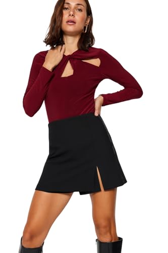 Trendyol - Trendyol Claret Red Cut Out and Gather Detailed Fitted/Body-Fitted Stretch Knitted Body with Snap Fasteners TWOAW22BD0047,Claret Red S