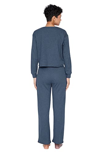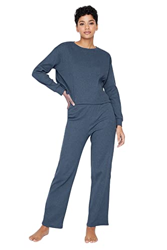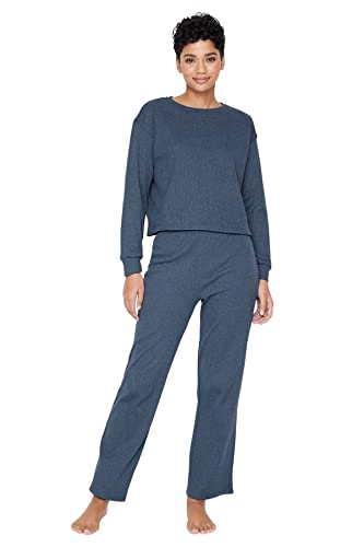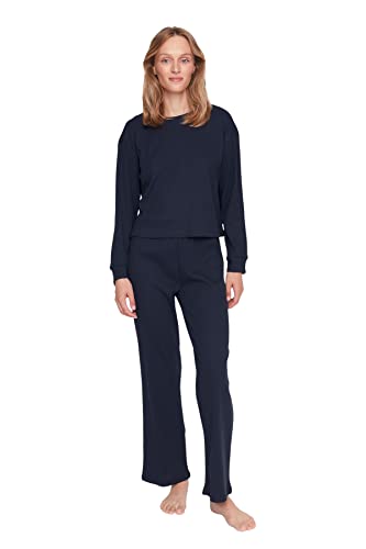 Trendyol - Trendyol Corded Knitted Pajama Set Navy Blue - THMAW21PT0009,Navy blue XS