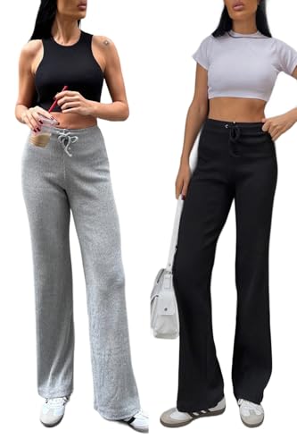 High Waist Spanish Leg Flare Sweatpants - Schwarz/Grey Tedaw25ea00010