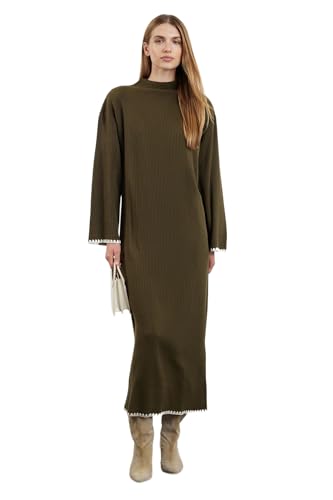 Trendyol - Trendyol Long Khaki Knitwear Dress - Stitching Detail, TCTAW25EB00001,Khaki XL