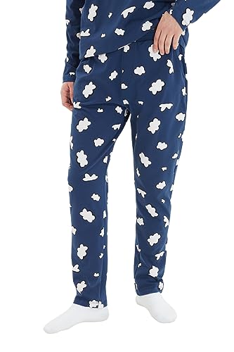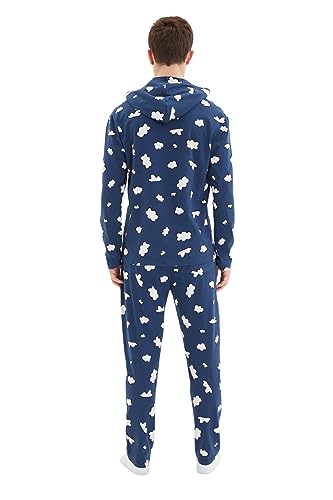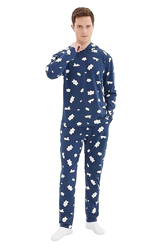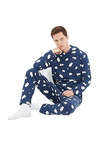 Trendyol - Trendyol Man Navy Blue Regular Fit Printed Top Hooded 100% Cotton Pajama Set TMNAW22PT1067 Pajama Set