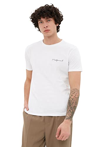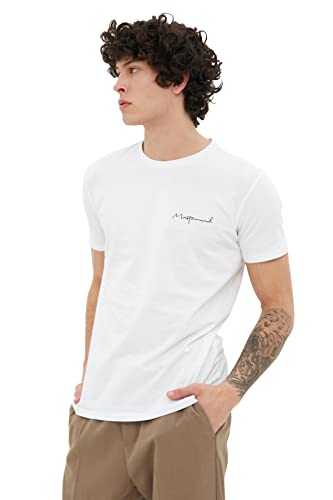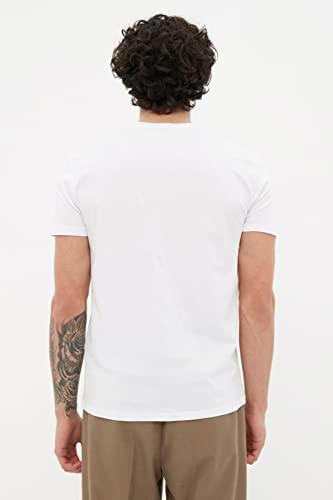Trendyol - ترنديول تيشرت ابيض بقصة ضيقة ورقبة دائرية ضيقة واكمام قصيرة للرجال TMNSS20TS0083