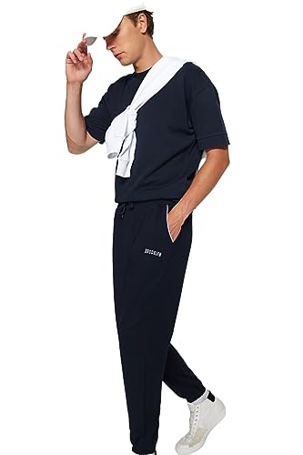 Navy Blue Regular Fit Printed Elastic Leg Sweatpants TMNSS22EA0121