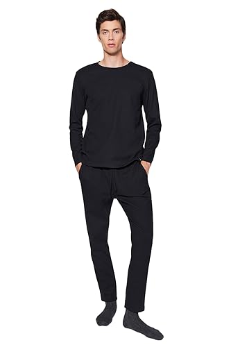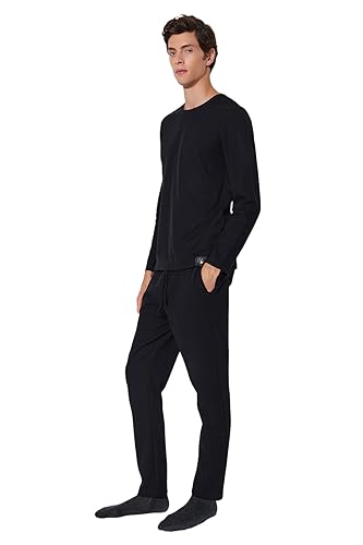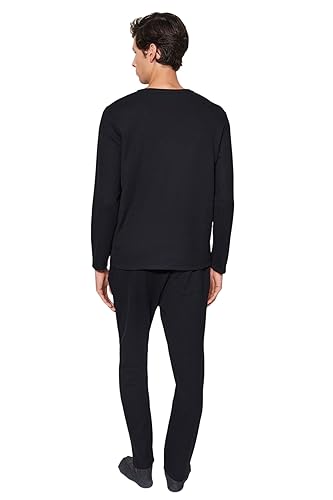 Trendyol - Trendyol Mens Black Regular Fit Waffle Knitted Pajamas Set TMNAW24PT00004 Pajama Set