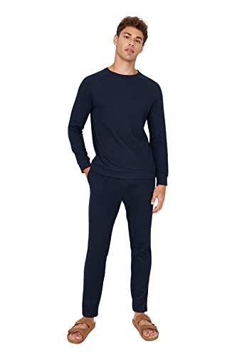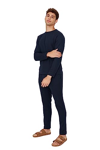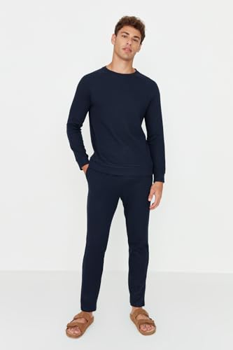 Trendyol - Trendyol Mens Navy Blue Regular Fit Waffle Knitted Pajamas Set TMNAW23PT00015 Pajama Set (pack of 1)