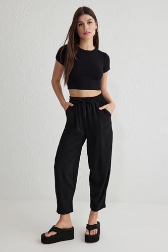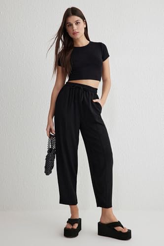 Trendyol - Trendyol Woman Black Elastic Waist Harem/Shalwar Relaxed Fit Pants Twoss25Pl00027 Trousers