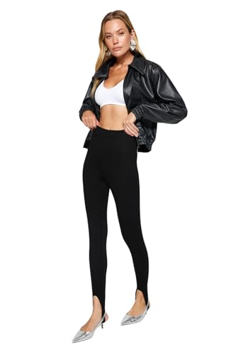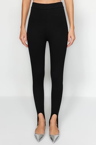 Trendyol - Trendyol Woman Black High Waist Fuso Interlock Knitted Tights TWOAW24TA00013 Leggings