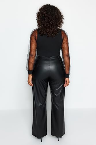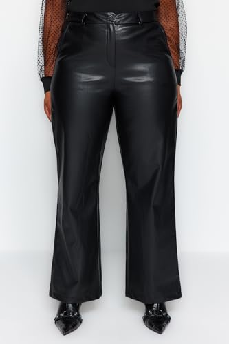 Trendyol - Trendyol Woman Black Wide Cut Faux Leather Woven Trousers Plus Size Pants