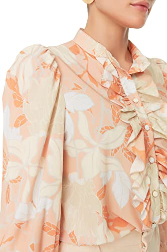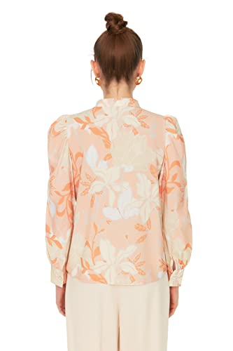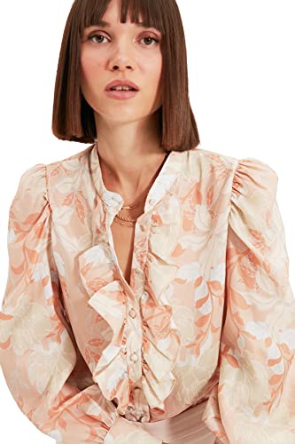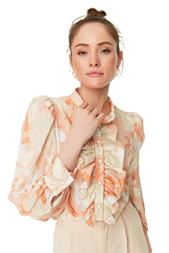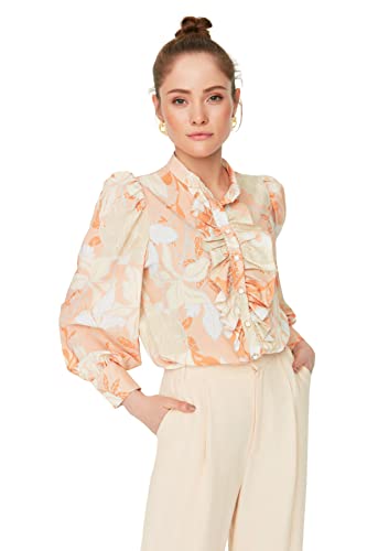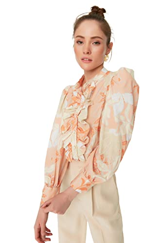 Trendyol - Trendyol Woman Orange Flower Patterned Ruffled Chiffon Fabric Regular Fit Woven Shirt TWOAW22GO0117 Shirt