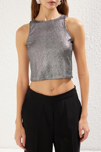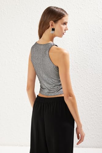 Trendyol - Trendyol Woman Silver Shiny Glitter Knitted Bustier TPRSS25BS00007 bustier