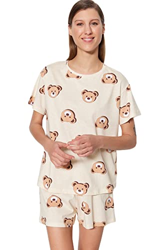 Trendyol - Trendyol Women 100% Cotton Teddy Bear T-shirt-Shorts Knitted Pajama Set THMSS23PT00005 Pajama Set (pack of 1)