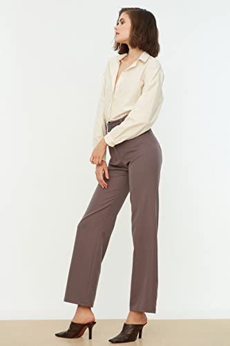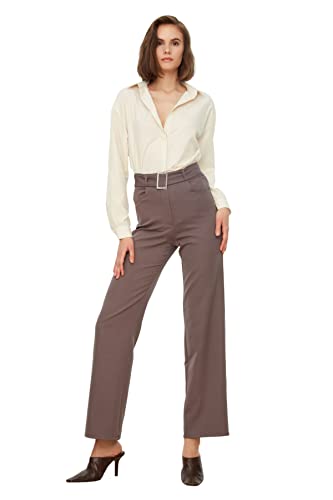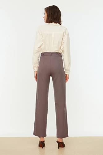 Trendyol - Trendyol Women Anthracite Belted Straight Cut Woven Fabric Trousers TWOSS21PL0104 Trousers