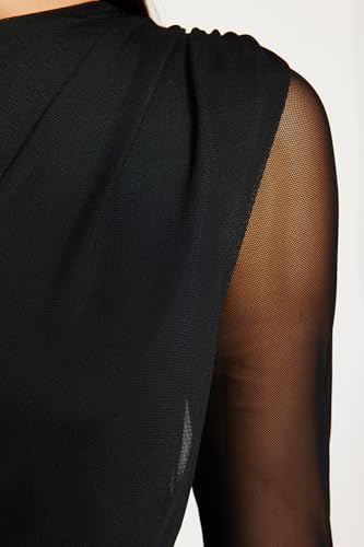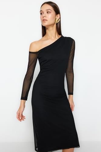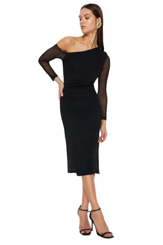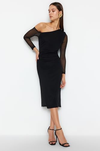 Trendyol - Trendyol Women Black Abstract Lined Midi Lined Asymmetrical Neck Knit Dress TWOAW24EL00947 Dress