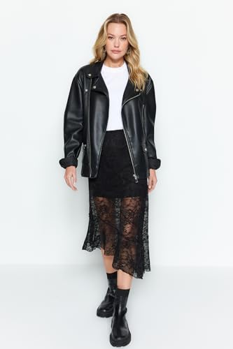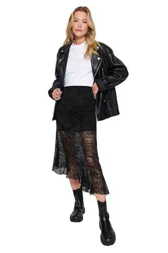 Trendyol - Trendyol Women Black Asymmetrical Midi Lined Knitted Lace Skirt TWOAW24ET00331 Skirt