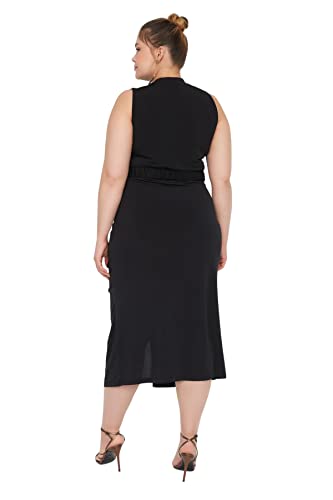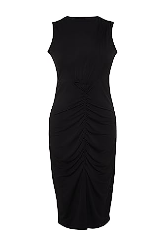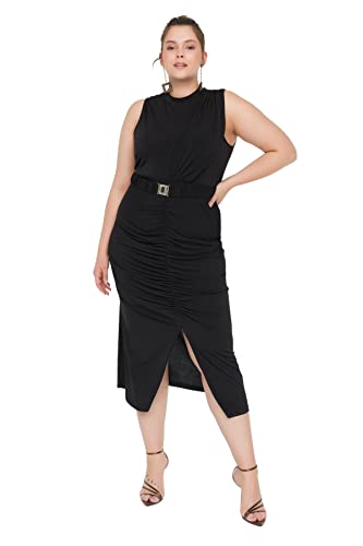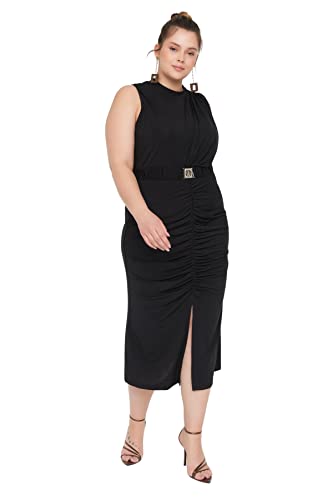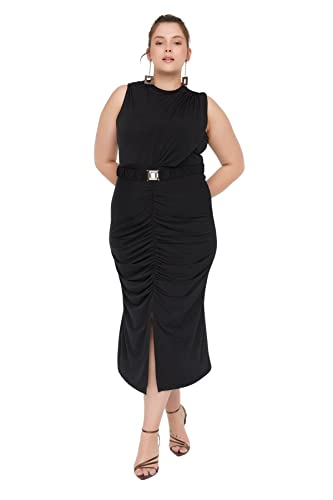 Trendyol - Trendyol Women Black Belted Drape and Slit Knitted Dress TBBSS22AH00008 Plus Size Dress