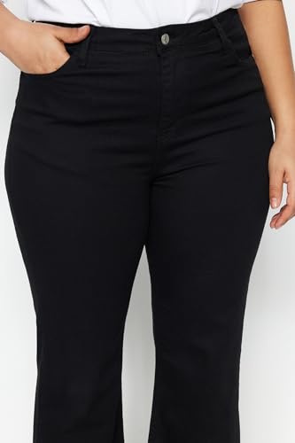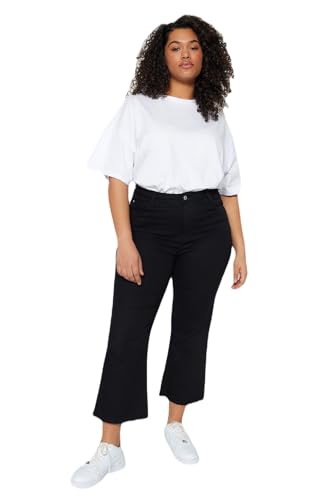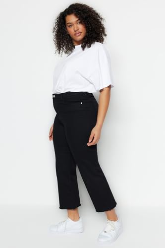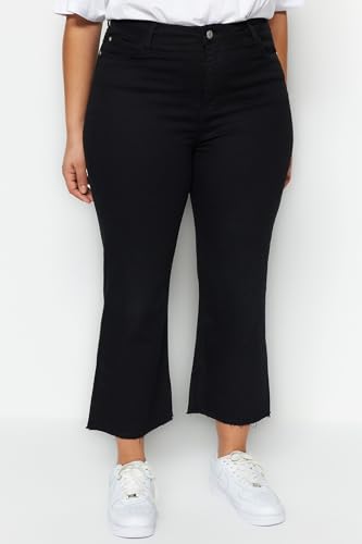 Trendyol - ترنديول بنطلون جينز نسائي اسود بدون لون بخصر مرتفع وساق منخفضة وقصيرة الساق TBBSS23AR00014 مقاس كبير TBBSS23AR00014