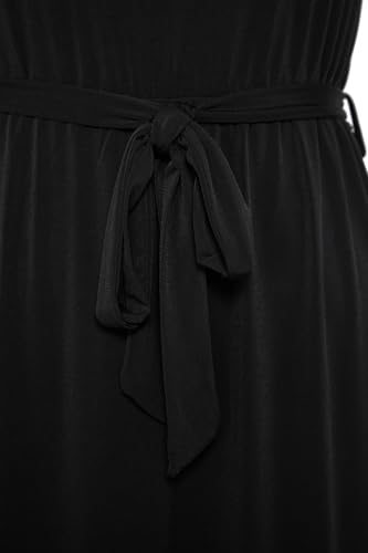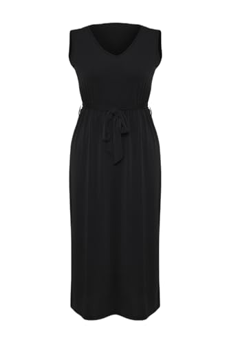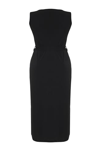 Trendyol - Trendyol Women Black Tie Detail Midi V Neck Stretchy Knit Dress TBBSS25AH00015 Plus Size Dress