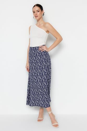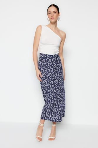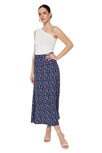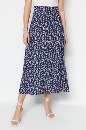 Trendyol - Trendyol Women Blue Floral Patterned Viscose Fabric Midi Length Woven Skirt TWOSS23ET00295 Skirt