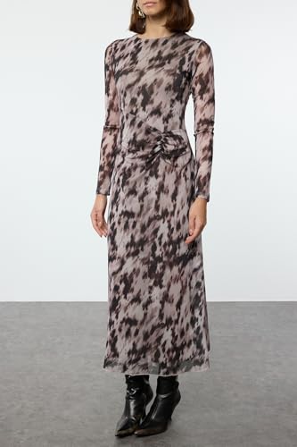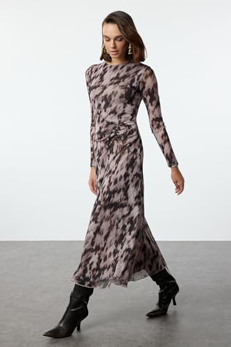 Trendyol - فستان ماكسي منسوج بتصميم منسدل طراز TWOAW25EL00408 من ترينديول، لون بني