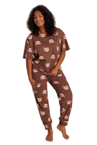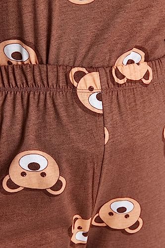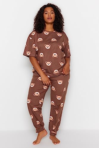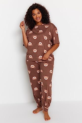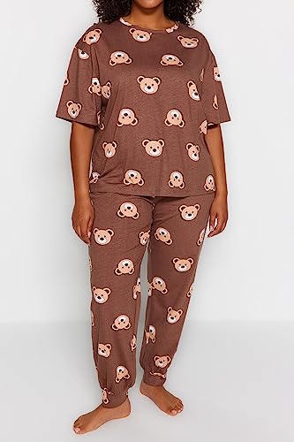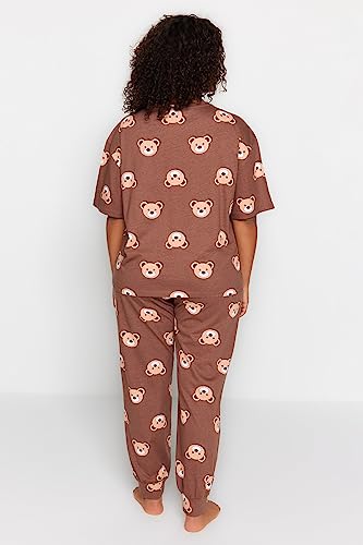 Trendyol - Trendyol Women Brown Teddy Bear Pattern Knitted Pajamas Set TBBAW23AI00039 Plus Size Pajama Set