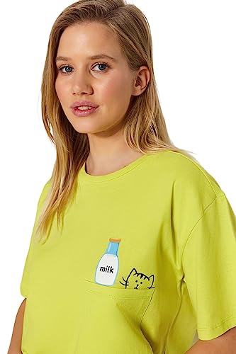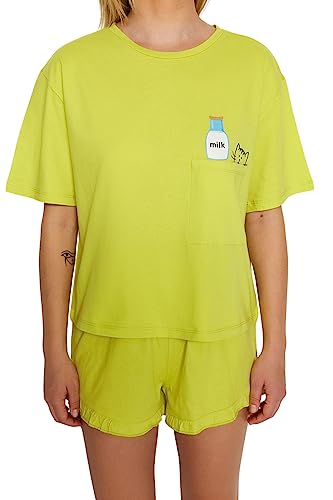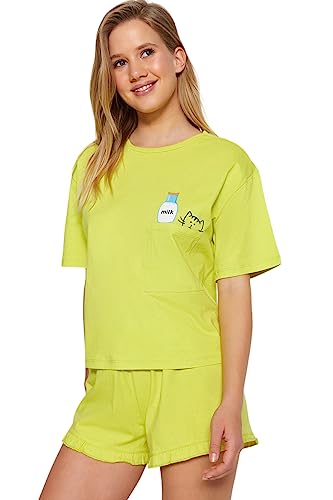 Trendyol - Trendyol Women Cotton Frilly Printed Knitted Pajamas Set Thmss22Pt0422 Pajama Set (pack of 1)