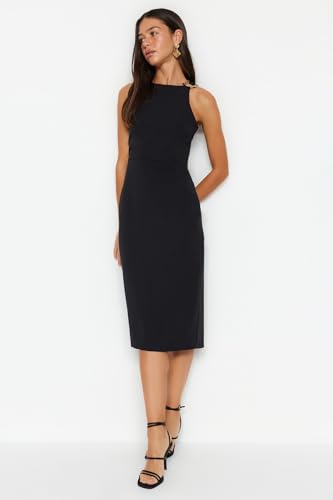Trendyol - Trendyol Women Fitted Midi Pencil Skirt Woven Dress with Accessory Detail on the Collar TWOSS23EL02115 Dress