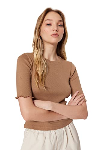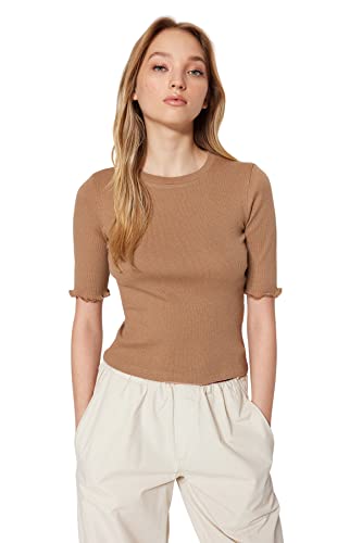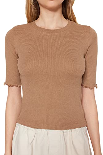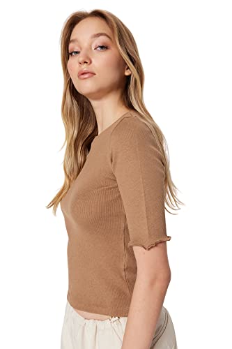 Trendyol - بلوزة محبوكة مرنة برقبة دائرية ضيقة للنساء طراز TWOSS23BZ00025 من ترينديول تصميم قميص (عبوة من قطعة واحدة)