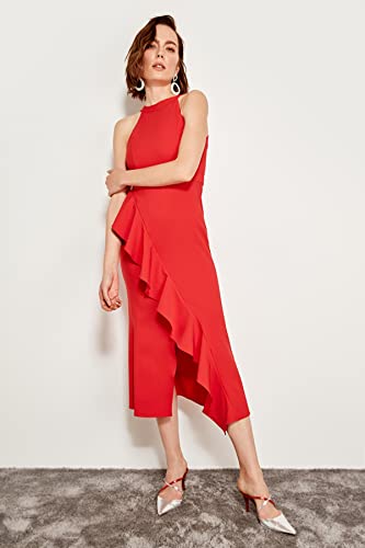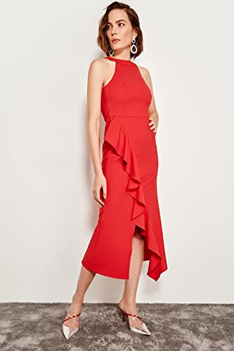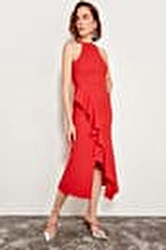 Trendyol - Trendyol Women Lined Flounce Woven Elegant Evening Dress TPRAW19BB0144 Dress