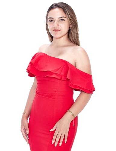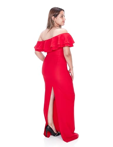 Trendyol - ترنديول فستان سهرة انيق منسوج بتفاصيل مكشكشة بلون احمر للنساء TPRSS24AE00066 فستان سهرة وفستان تخرج