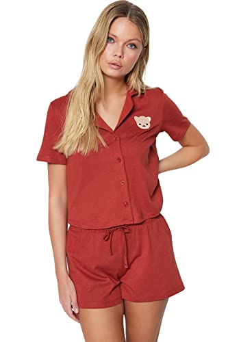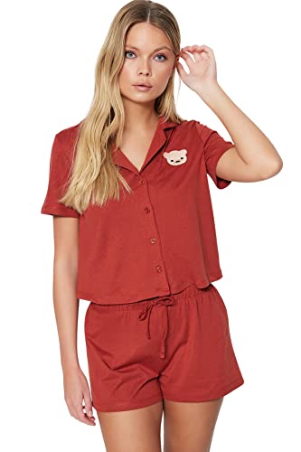Trendyol - Trendyol Women's Plain Knit Shirt-Short Pajama Set