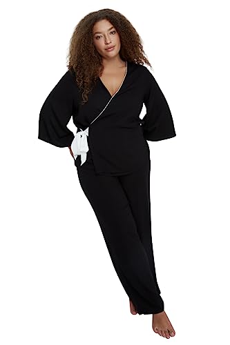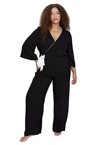 Trendyol - Trendyol Women's Trendyol Woman Plain Woven Plus Size Pajama Set Pajama Set (pack of 2)