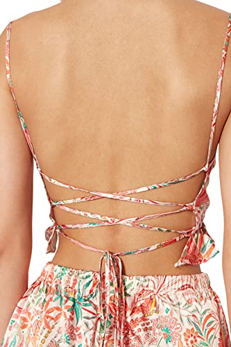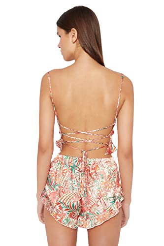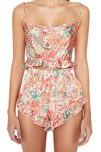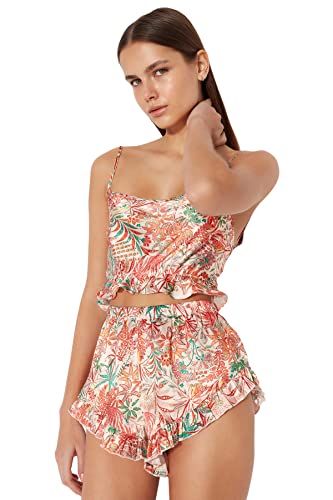 Trendyol - Trendyol Women Satin Woven Pajama Set with Multicolored Floral Ruffle and Back Strap THMSS23PT00048 Pajama Set (pack of 1)