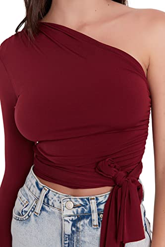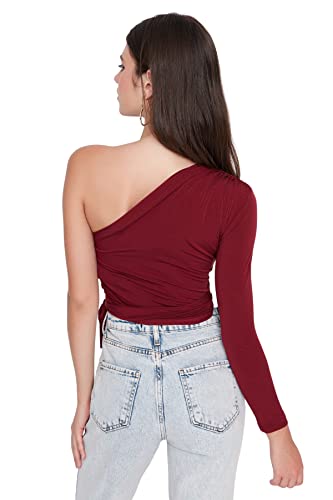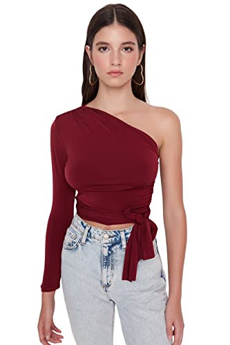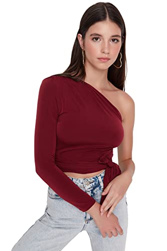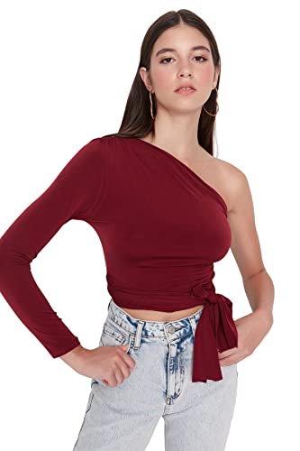 Trendyol - Trendyol Women Slim Tie Detailed Single Sleeve Crop Stretchy Knitted Blouse TWOAW23BZ00094 Trendyol Women Slim fit Basic Asymmetrical Collar Knit Blouse (pack of 1)