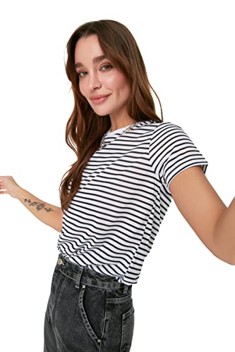 Trendyol - Trendyol Women Striped Basic Knitted T-Shirt TWOSS21TS0904 T-Shirt