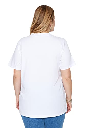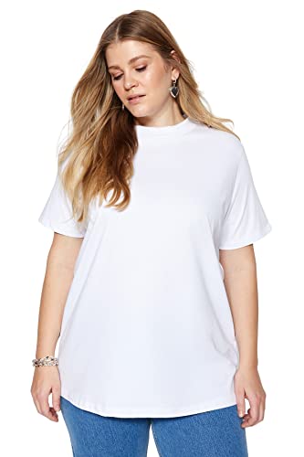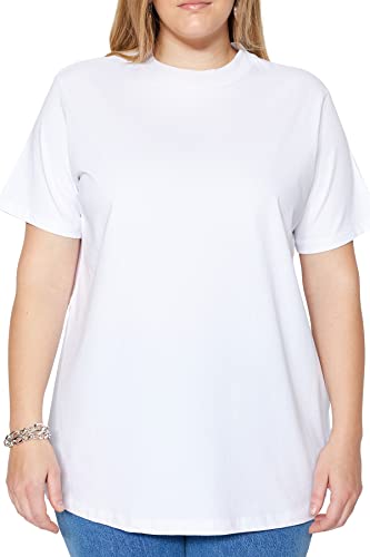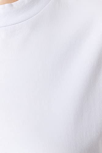 Trendyol - Trendyol Women White Navy Blue Ribbed Collar Boyfriend 100% Cotton Knitted T-shirt TBBSS23BF00019 Trendyol Women Relaxed fit Basic Crew neck Knit Plus Size T-shirt